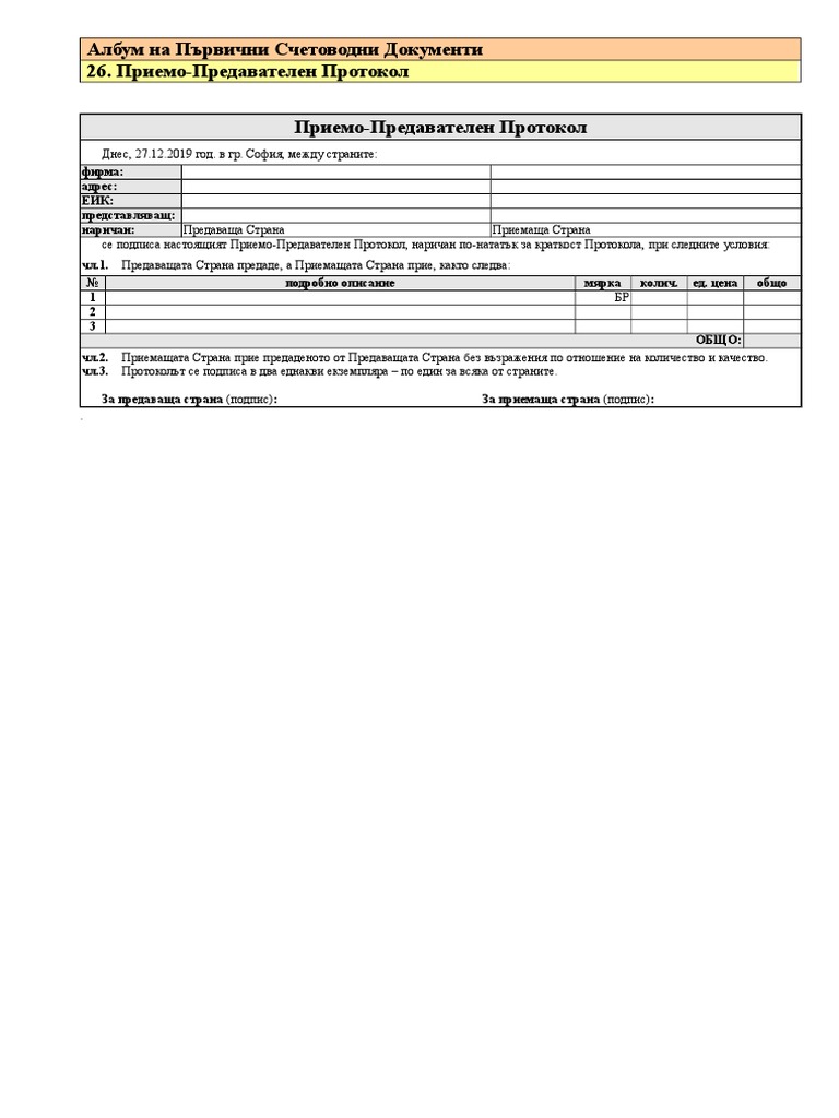 Priemo Predavatelen Protokol Dokument Po Schetovodstvo Ikonomika Pomagalo Com
