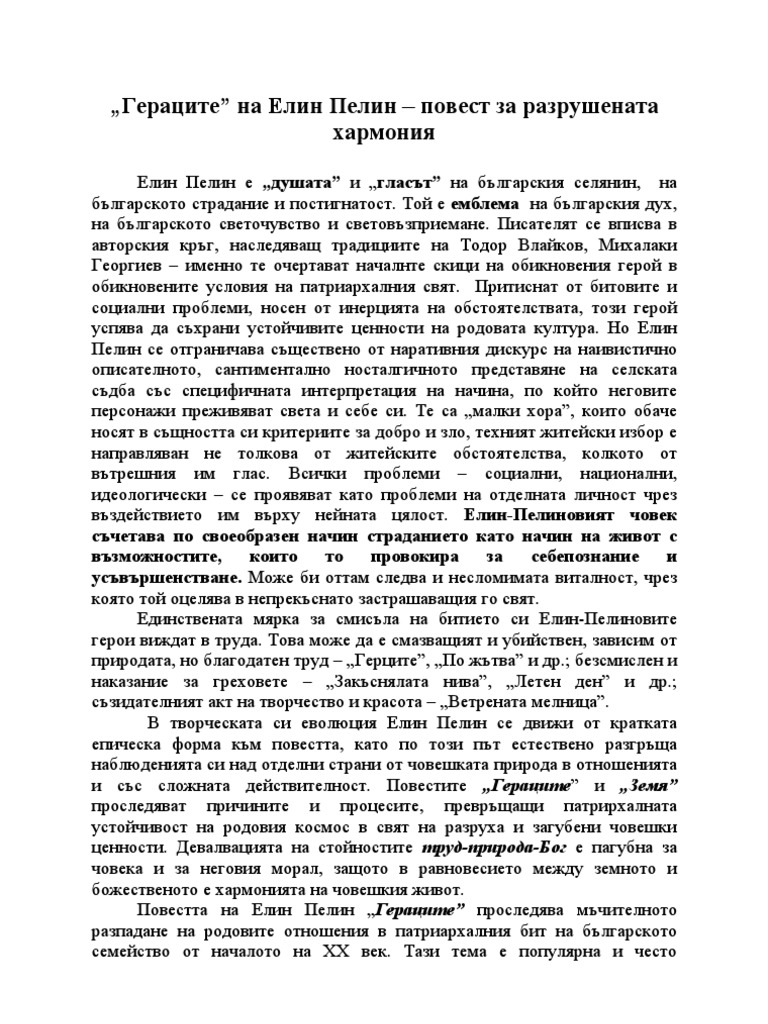 Geracite Na Elin Pelin Povest Za Razrushenata Harmoniya Referat Ot Blgarski Ezik I Literatura